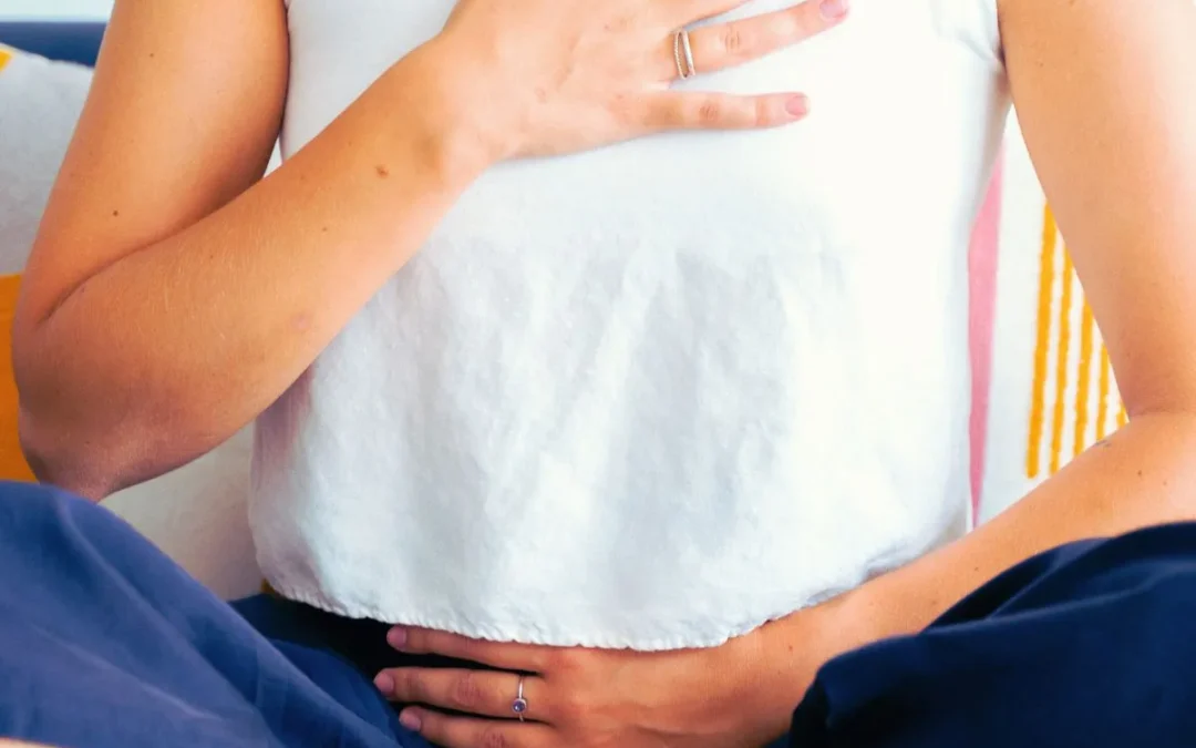 Schultern hochgezogen, flache Brustatmung, Enge im Brustkorb – typische Stresssignale.